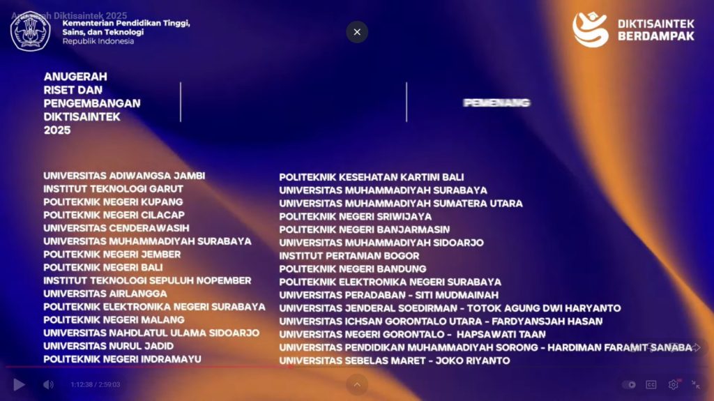 Universitas Ichsan Gorut (UIGU) Raih Anugerah Diktisaintek 2025 di Bidang Riset & Pengembangan